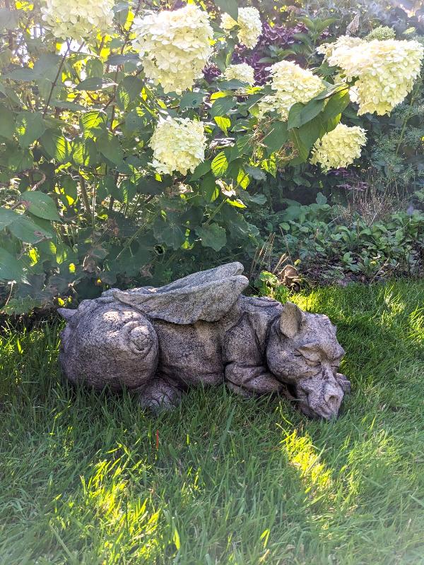 The dragon’s resting pose and textured surface give it a classic, storybook look that complements gardens, borders, and patios, with muted stone tones that suit a variety of settings.