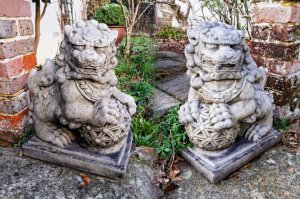 Pair of Foo Dogs - Chinese Guardian Lions - Garden Stone Statues
